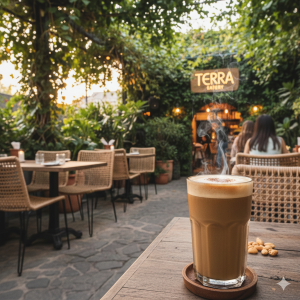 Wenn ihr eine kurze Auszeit vom Großstadt Dschungel braucht, ist Terra euer Ort. Die Atmosphäre hier ist erdig, grün angehaucht und herrlich entspannt.  Zwischen all den echten Pflanzen auf der Terrasse vergisst man glatt, dass man in einer Wüstenmetropole ist. Der Latte ist besonders cremig und hat echtes Suchtpotenzial (moreish ist gar kein Ausdruck dafür ! Just for your info : Das Wort „moreish“ ist British English und ein wunderbares Kompliment für jeden Koch oder Barista. Es beschreibt ein Lebensmittel oder Getränk, das so gut schmeckt, dass man nach dem ersten Bissen oder Schluck sofort mehr davon haben möchte. Es leitet sich schlicht von „more“ ab. Man könnte es fast mit „mehr-isch“ übersetzen. Es ist die kulinarische Entsprechung zu „Suchtpotenzial“. Aber auf eine positive, genussvolle Art. Man nutzt es oft für Dinge, die man gern nebenbei weg futtert oder genießt, wie Nüsse, Chips, Vollmich Nuss Schokolade, Pralines & Cream Ice Cream, Mandarinen Käse Torte oder eben einen besonders cremigen, nussigen Hojicha Latte. Wenn also jemand sagt: „This Hojicha Latte is very moreish!“, dann meint er: „Der ist so lecker, ich könnte direkt noch einen zweiten bestellen.“